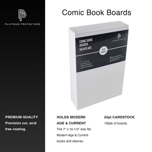 Platinum Protectors Comic Book Boards for Silver Age, Current/Modern - 100 Pack