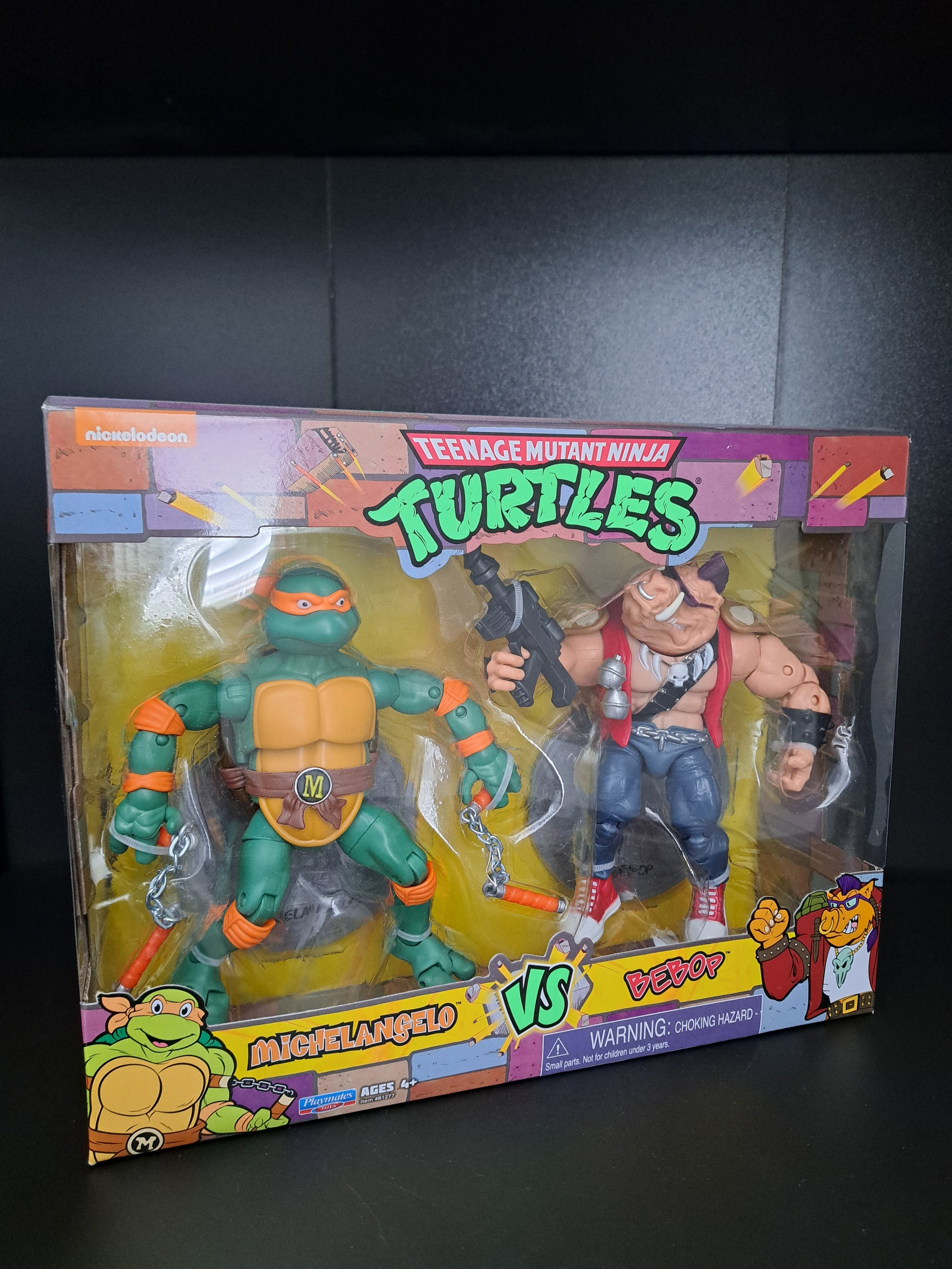 MICHELANGELO VS. BEBOP TMNT NINJA TURTLES ACTION FIGURE PLAYMATES NEW 2021