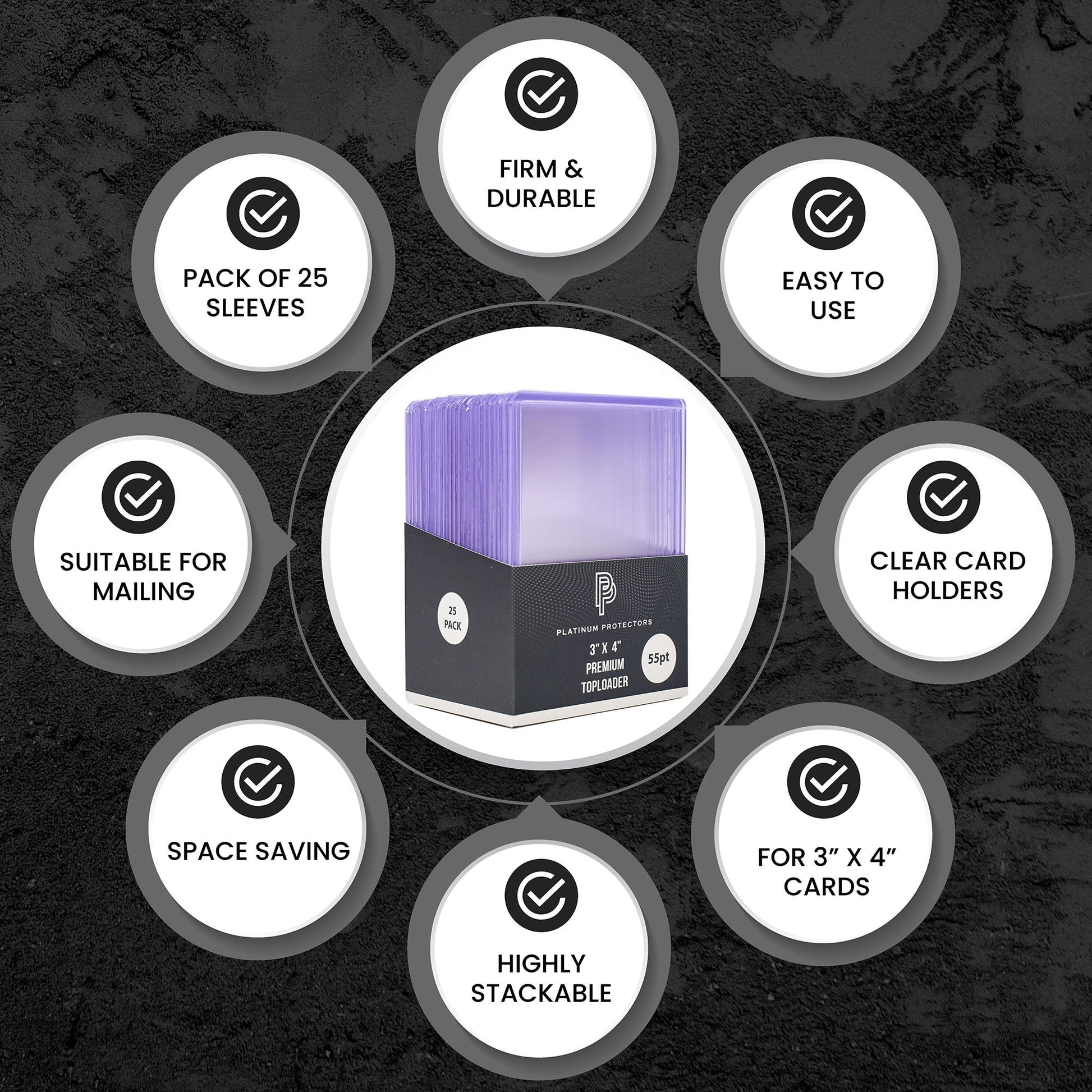 - PACKAGE INCLUDES: 25-pack(s) of 55pt premium quality toploaders.