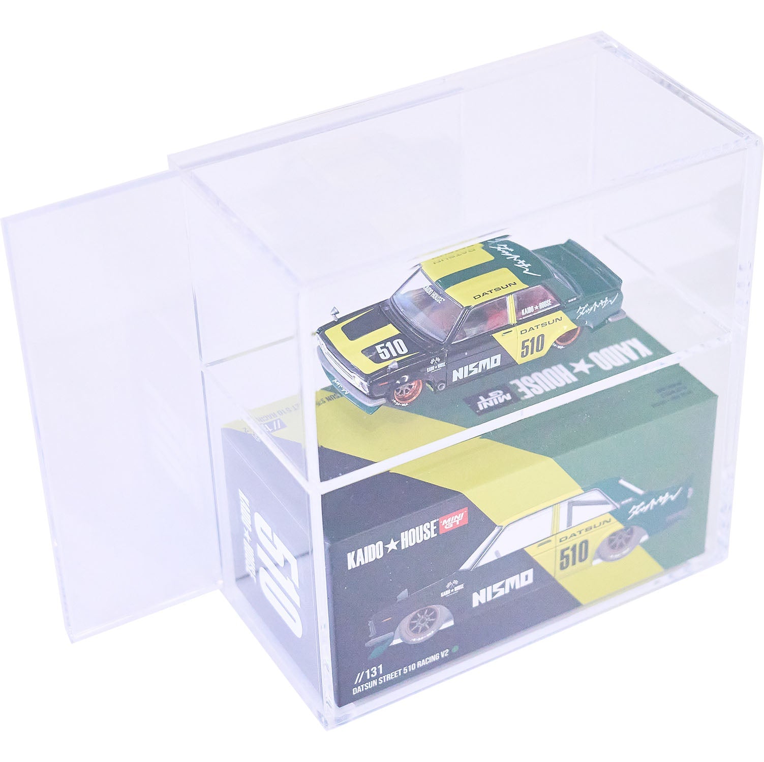 Display your Kaido House MiniGT cars and original box with our custom designed dual level premium acrylic case. Our cases are made from the highest quality 100% virgin imported acrylic. With a 99.5% UV rejection rate, you can be sure your cars will stay safe.